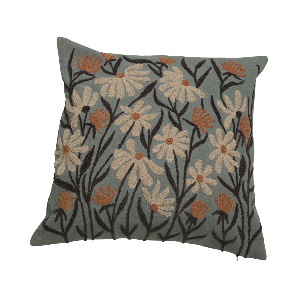 Beskrivning Vacker broderad kudde med enfärgad baksida. Egenskaper Färg Multi Storlek 50 x 50 cm Komposition 100% bomull Tvättråd Handtvätt
