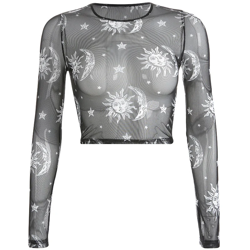 Den transparenta mesh-designen ger ett modernt och edgy uttryck, samtidigt som materialet formar sig mjukt efter kroppen. Toppen är lätt att matcha med högmidjade jeans, kjol eller lager-på-lager över ett linne eller bh.