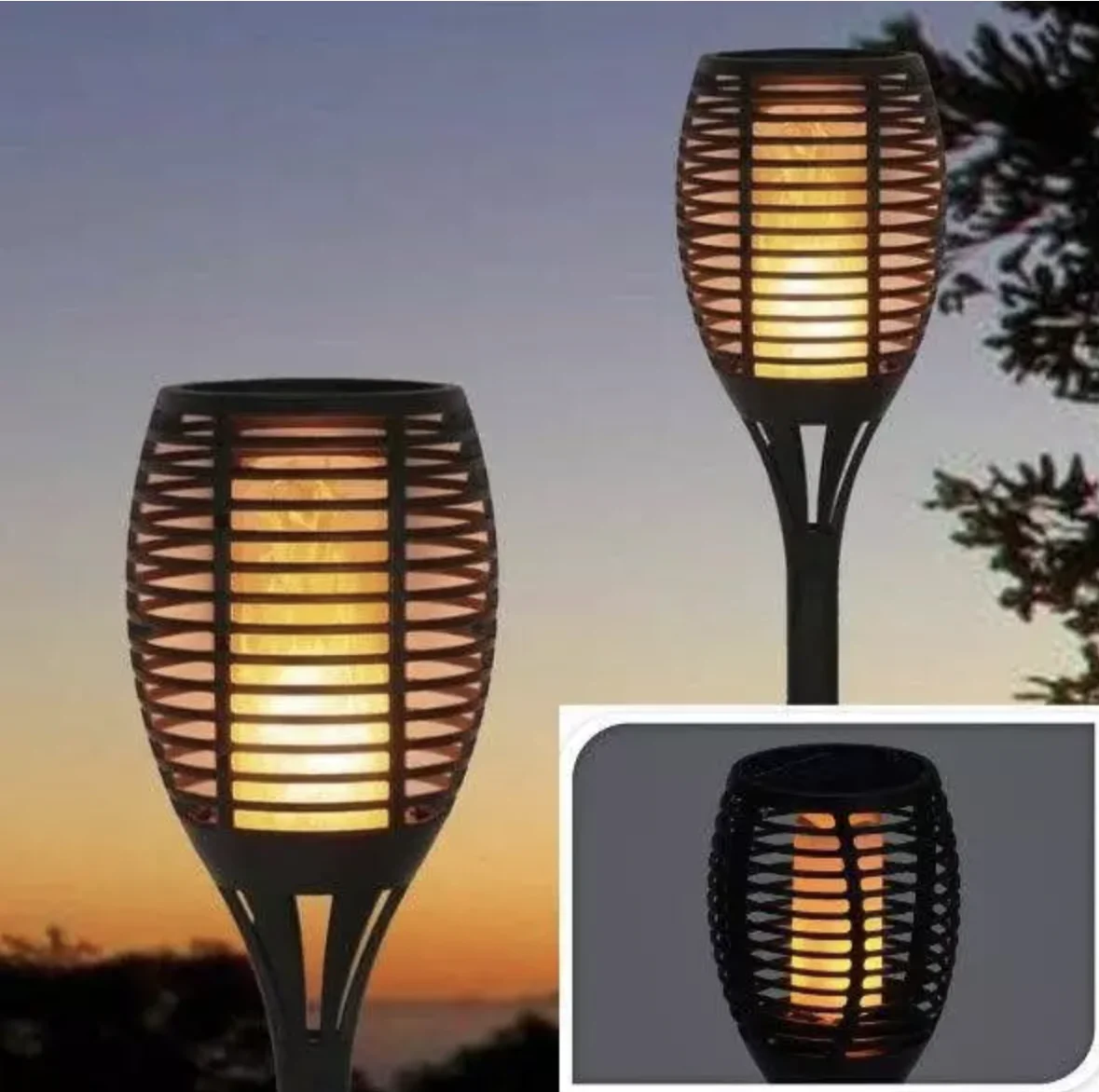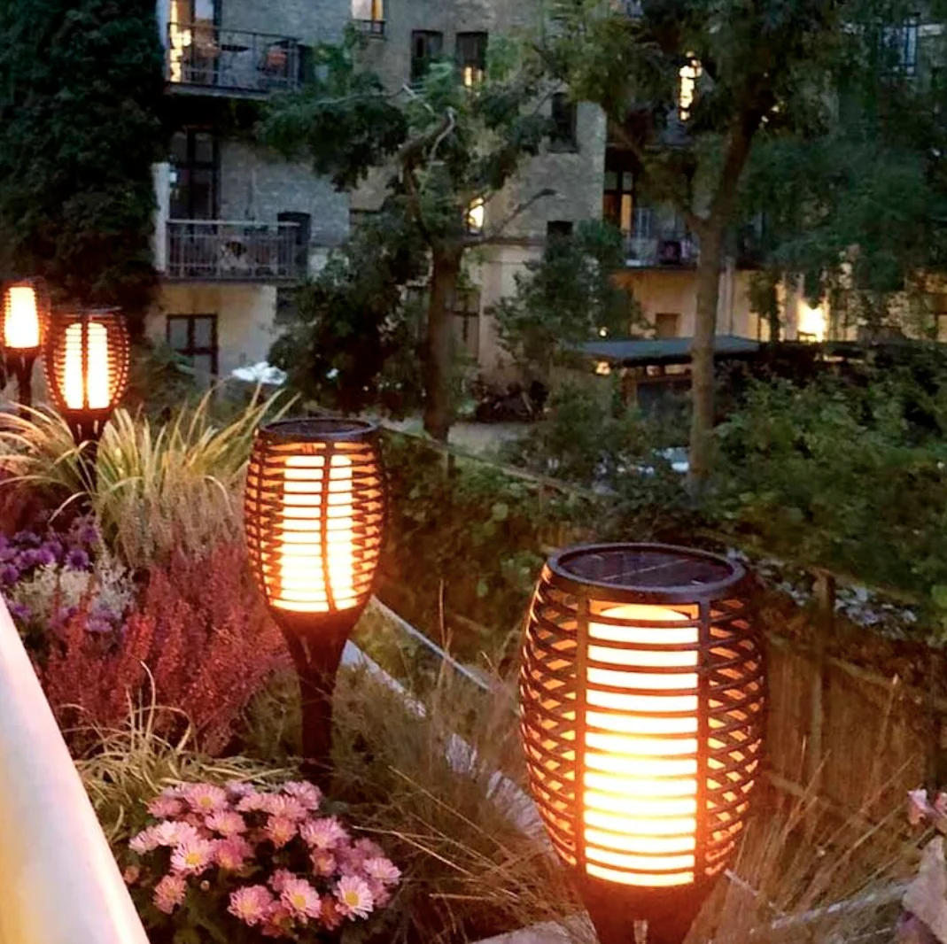 - LED-solarlampan skapar en verklighetstrogen flameffekt.