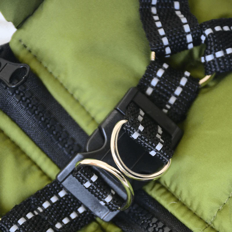 Slipp krånglet med separata selar. Med denna hundjacka med inbyggd sele är ni redo för promenad på några sekunder – varm, trygg och bekväm i ett enda plagg.
