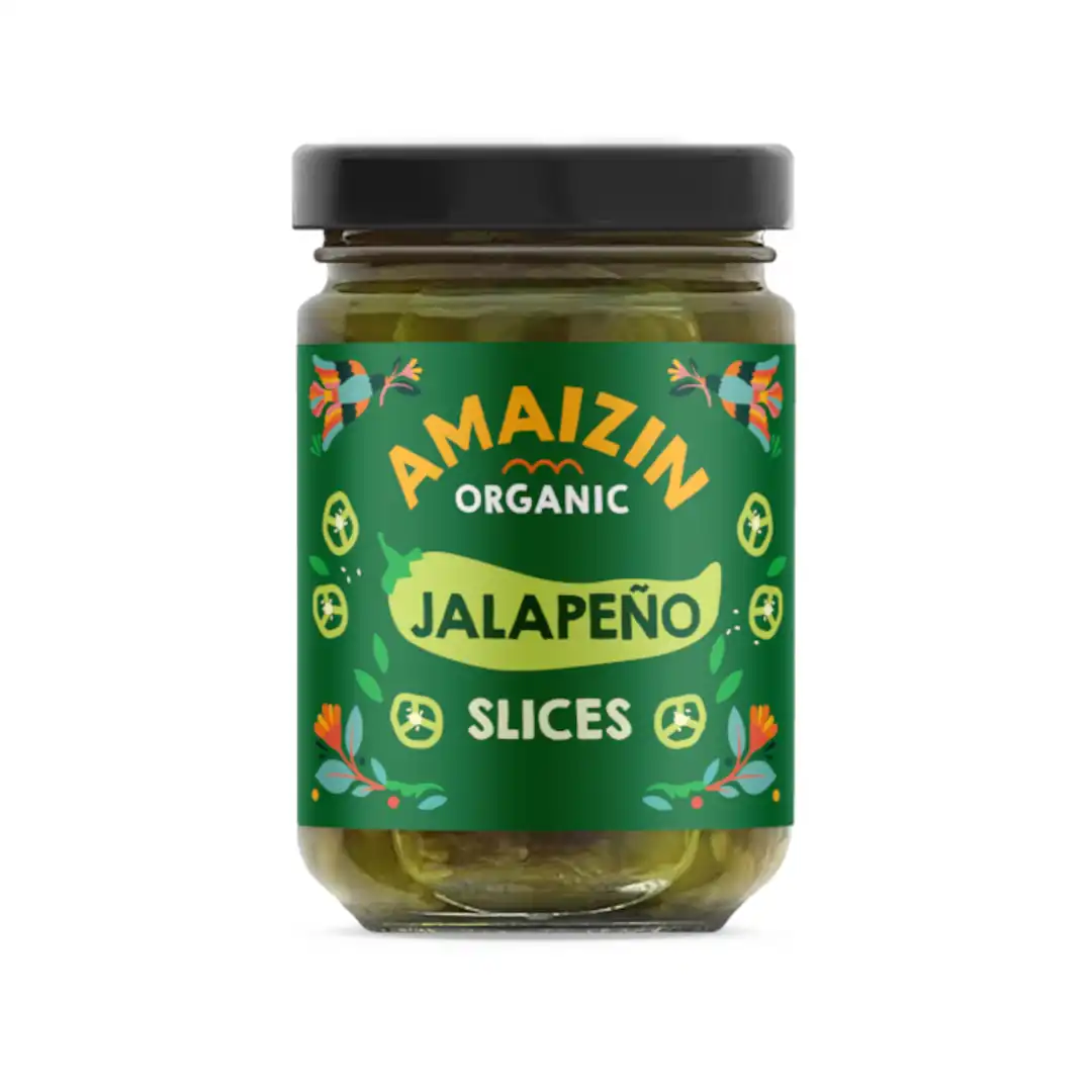 Amaizin ekologiska jalapeñoskivor Jalapeños har en unik smak och ett ordentligt sting. De passar utmärkt till Amaizins tacos, fajitas och i tortillarätter.