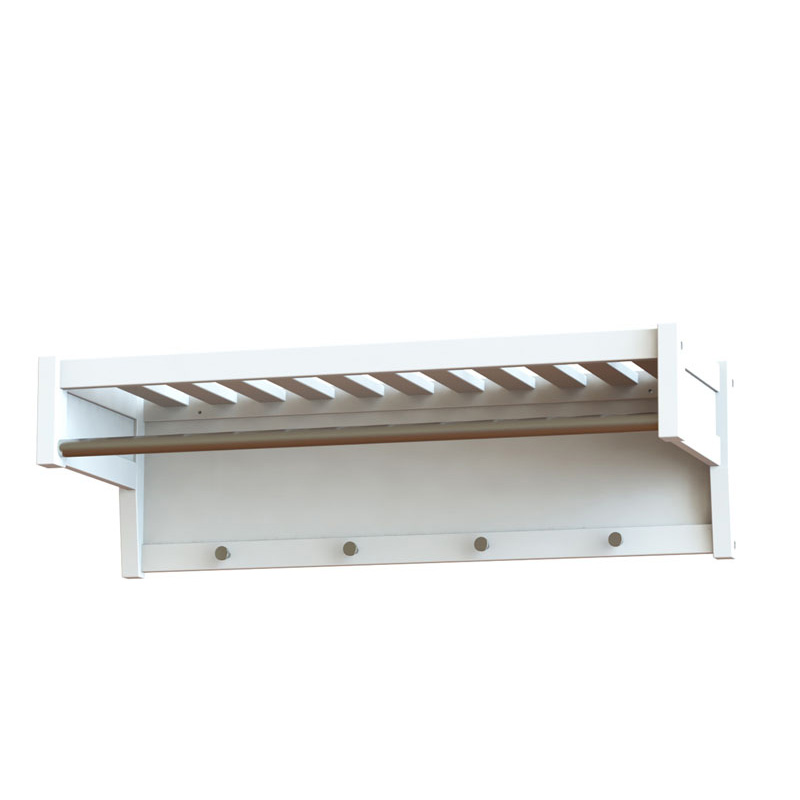 | Beskrivning: | Hatthylla i MDF vitlack. Knoppar och hängare i metall. |