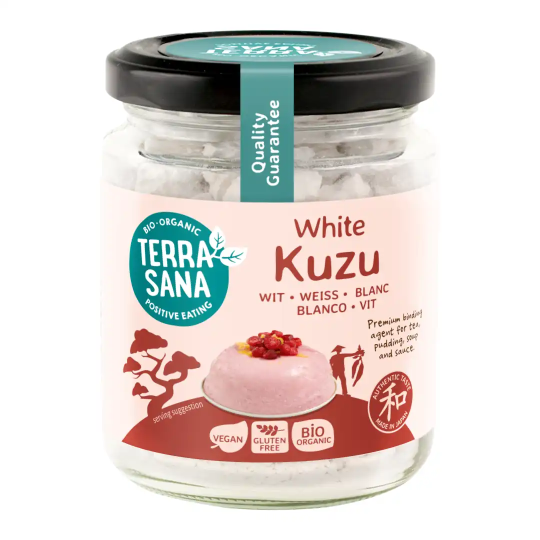 Vit kuzu är ett kraftfullt, vegetabiliskt bindemedel som tillverkas av stärkelse från kuzu-växten. Det binder soppor, såser och (varma) desserter. Neutral smak, glutenfritt och veganskt.