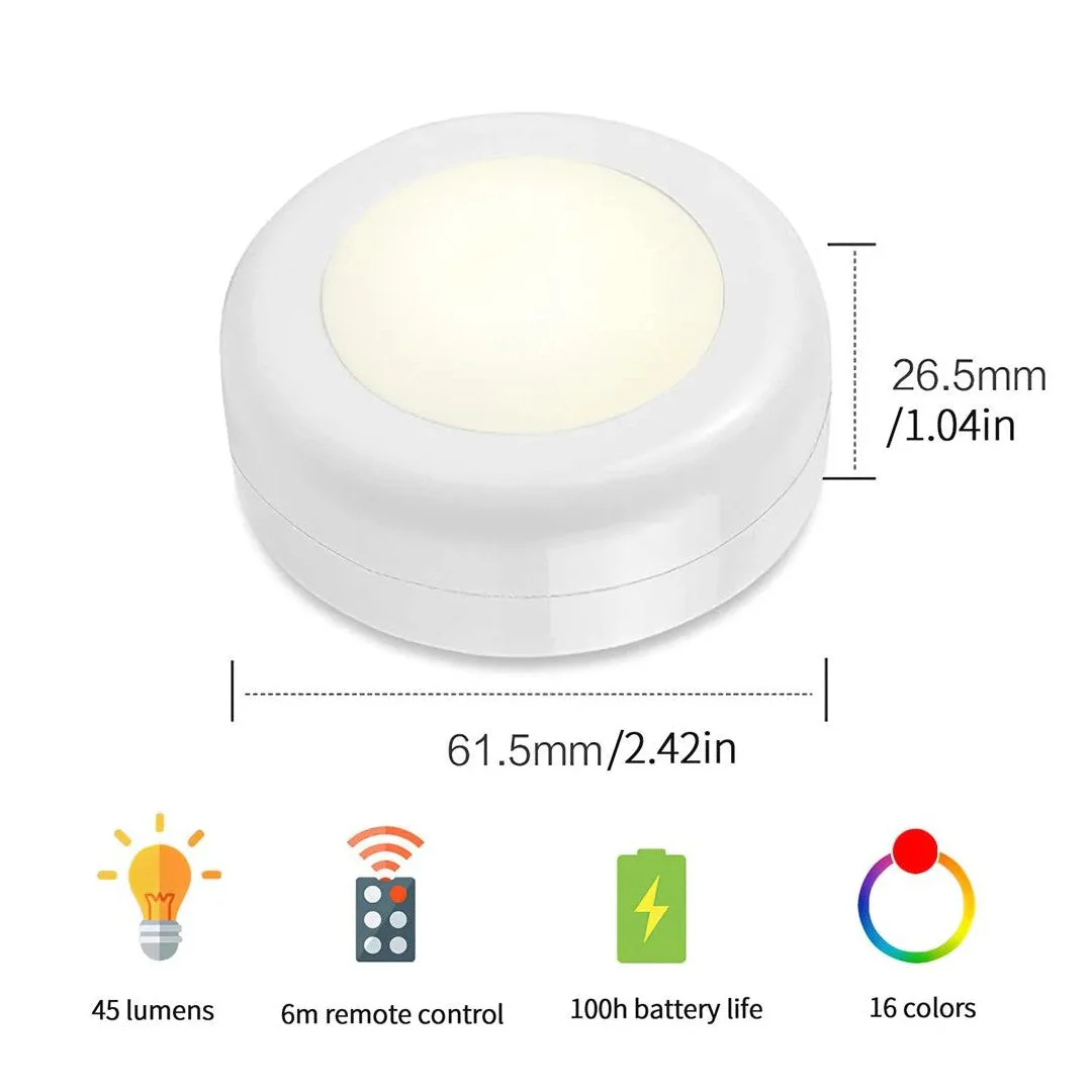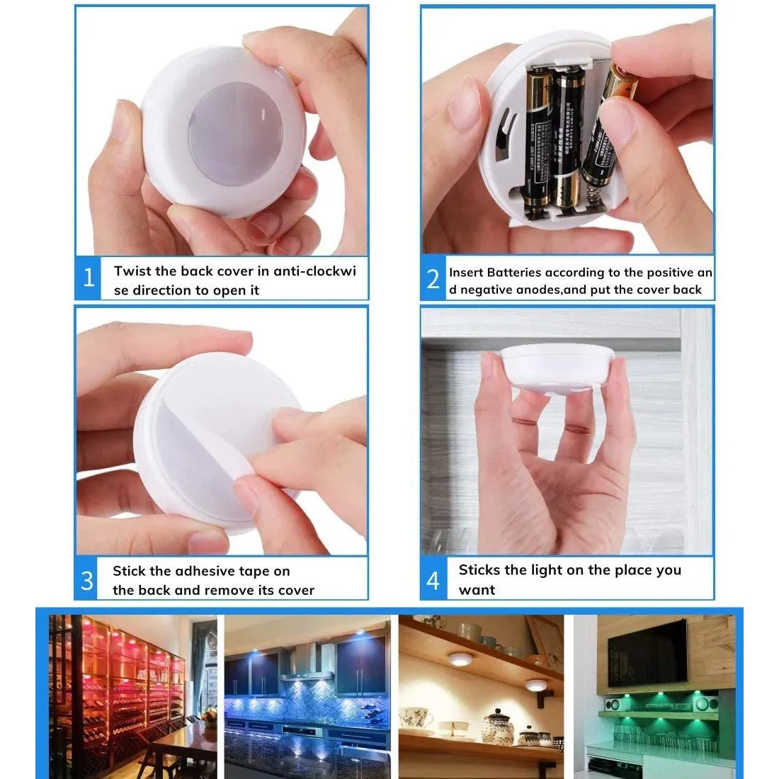- Enkel installation: Trådlösa spotlights som använder 3 AA-batterier vardera (batterier ingår ej) och kan enkelt fästas med den medföljande 3M-tejpen.