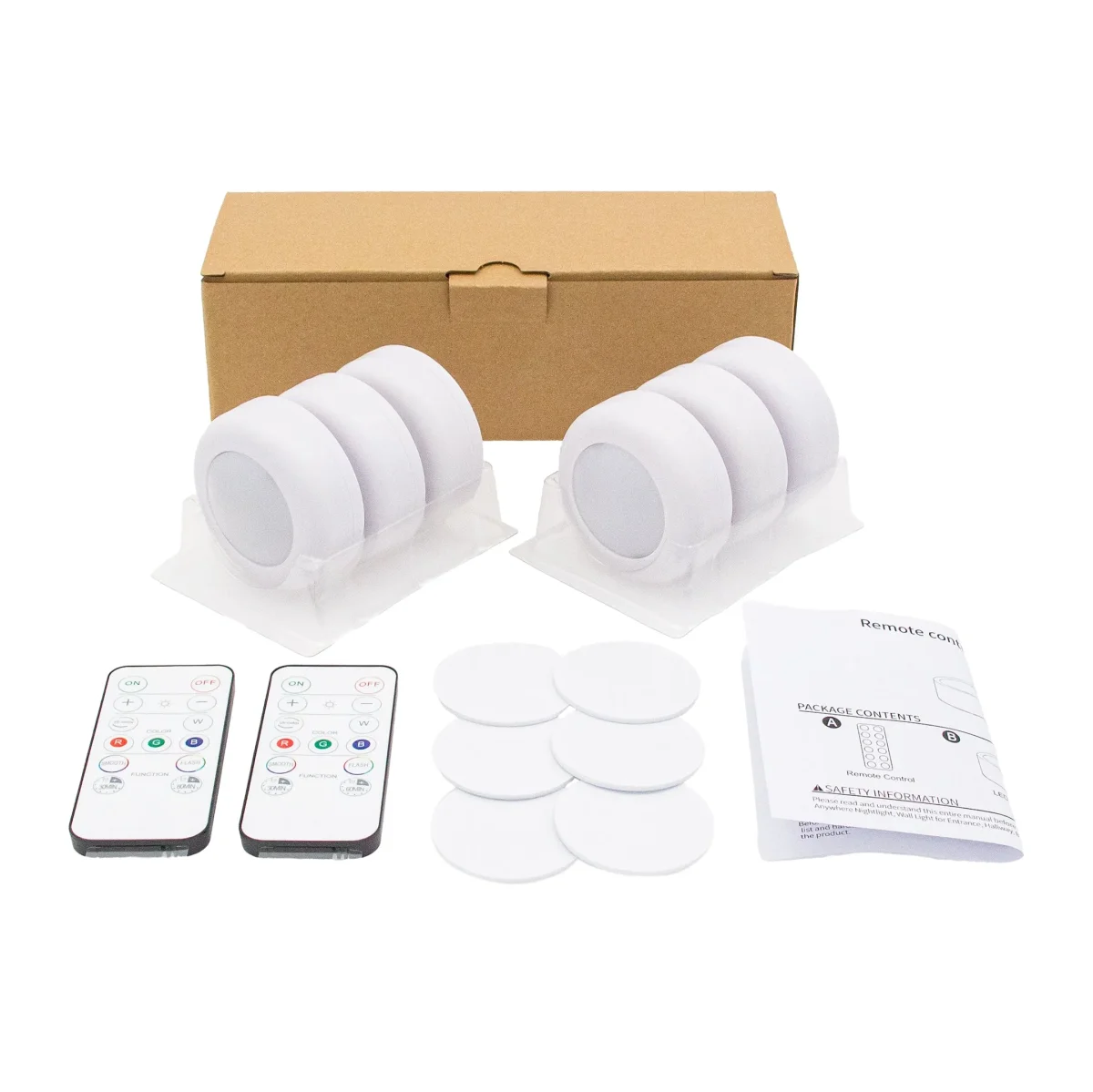 LED-spotlights – 6 st Trådlösa LED-Spots med 2 Fjärrkontroller RGB design 13 färger