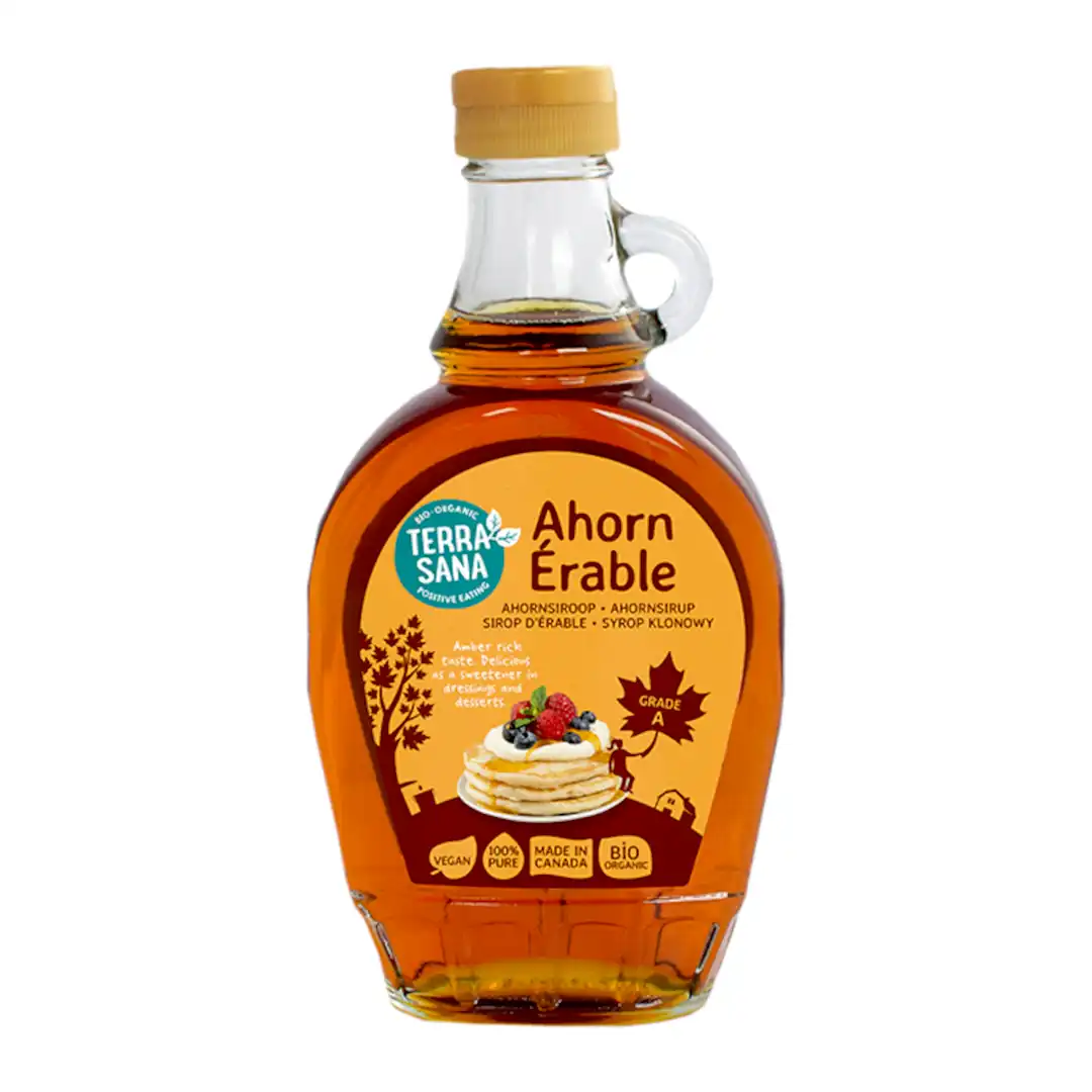 Ren ekologisk lönnsirap 100% klass A från Kanada, vegansk, glutenfri, jästfri och utan salt.