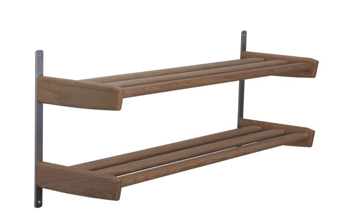 | Beskrivning: | Skohylla Meja, väggmodell med 2 hyllplan och detaljer i slipat stål. Skohyllan Meja är tillverkad i massiv ek eller vitlackad massiv björk.