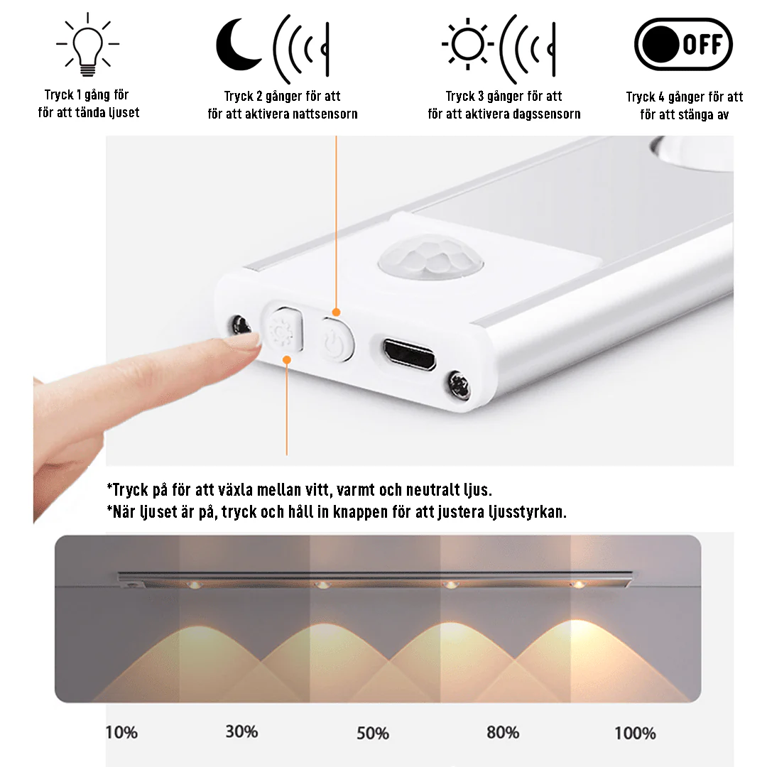 Perfekt för trappor, hall, kök, garderober eller andra mörka utrymmen där fast belysning inte behövs.