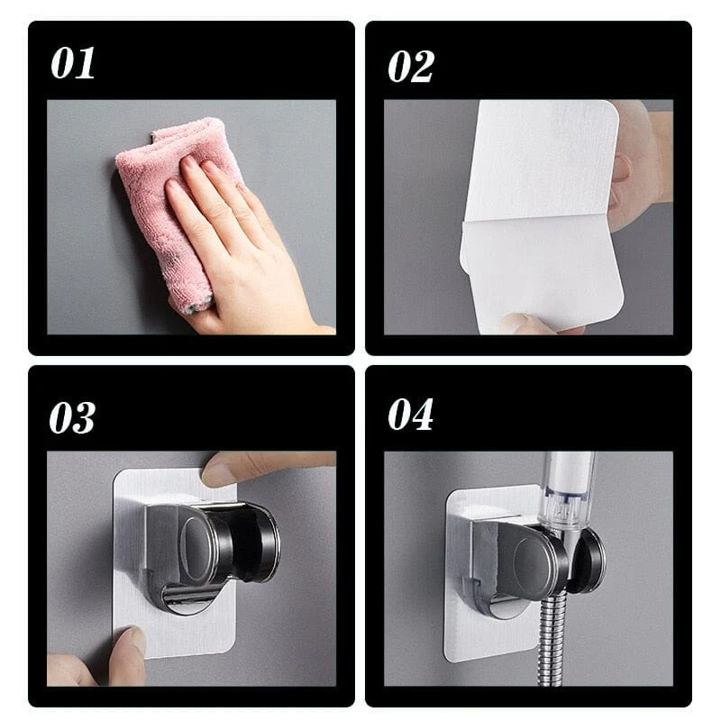 • Blixtsnabb Installation: Glöm borrhål och krångliga monteringsprocesser! Med vår duschhuvudshållare kan du avsluta installationen på bara några sekunder. Rengör ytan, håll den torr, och fäst den sedan med enkelhet. Dra av locket, tryck och njut av det praktiska.