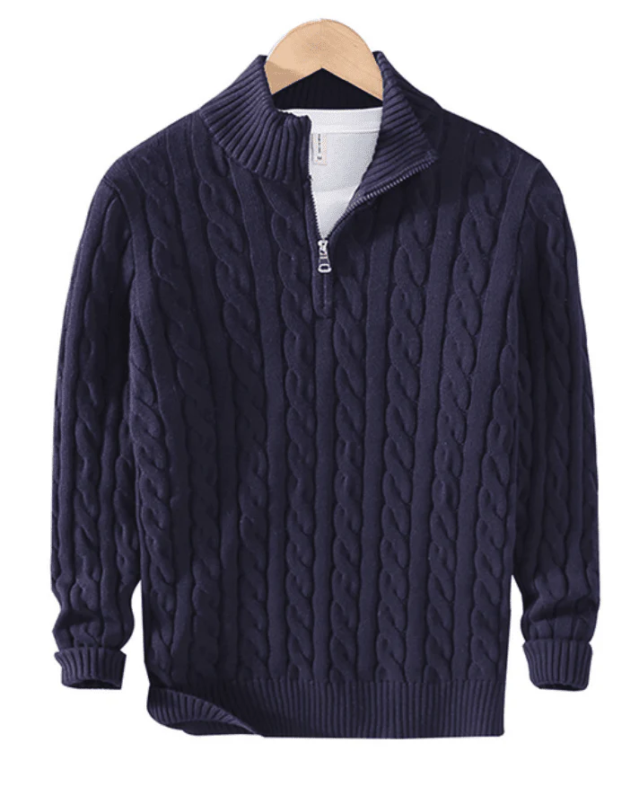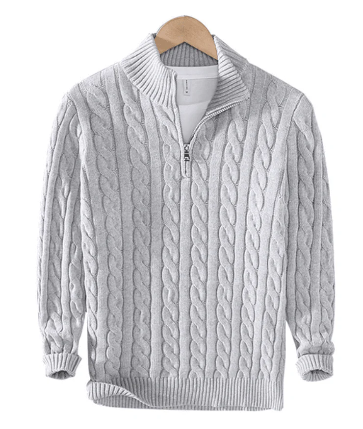 Möt vår Zip Pullover, en symbol för komfort, stil och diskret sofistikation, exklusivt skräddarsydd för den moderna mannen. Om du är en gentleman som strävar efter lyx utan att kompromissa med enkelhet, är detta mästerverk gjort för dig. Med vår pullover går komfort och stil hand i hand, så att du kan göra ett statement med oöverträffad elegans.