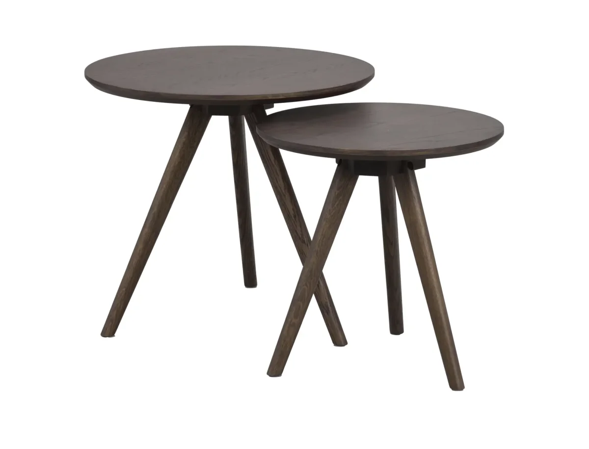 Yumi satsbord är ett set med två bord i tidlös skandinavisk design som håller år efter år. De flexibla satsborden sparar plats och är lätta att flytta runt vid behov. Använd dem tillsammans som soffbord eller enskilt som sidobord. Bordsskivorna består av lackad ekfaner. Stora bordet; Ø 50 cm, höjd 45 cm, lilla bordet; Ø 40 cm, höjd 40 cm. Kombinera gärna med andra möbler i serien Yumi.