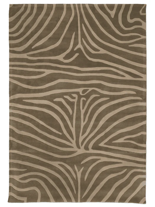 Handtuftad ullmatta med zebramönster i mocca och beige